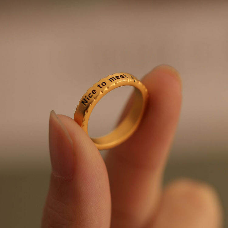 Nombre del producto:Chapado en oro grabado agradable para conocer a usted pareja anillos