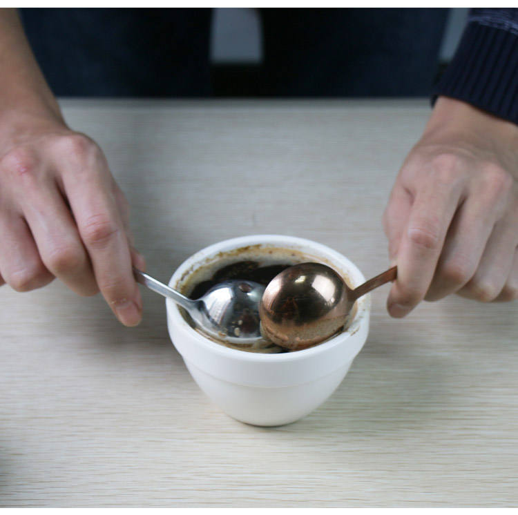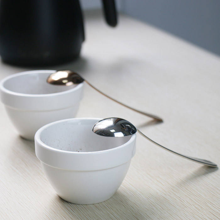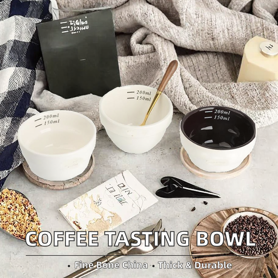Taza de prueba de café con tazón y cucharaTipo de herramienta para café y té