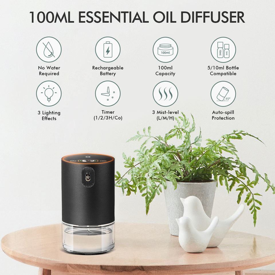 Difusor de Aromaterapia USB para Coche y Hogar SCENTCARES de 100 ml, Mini Difusor de Aceites Esenciales de Vidrio Portátil, Batería Recargable, Sin Agua
