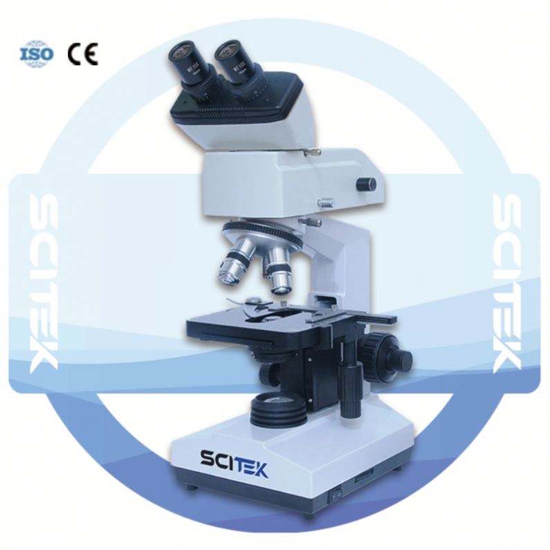 Microscopio de Fluorescencia SCITEK con Cabezal Trinocular, Óptica Infinita Inclinada a 45°, Objetivos Acromáticos, Doble Capa Mecánica