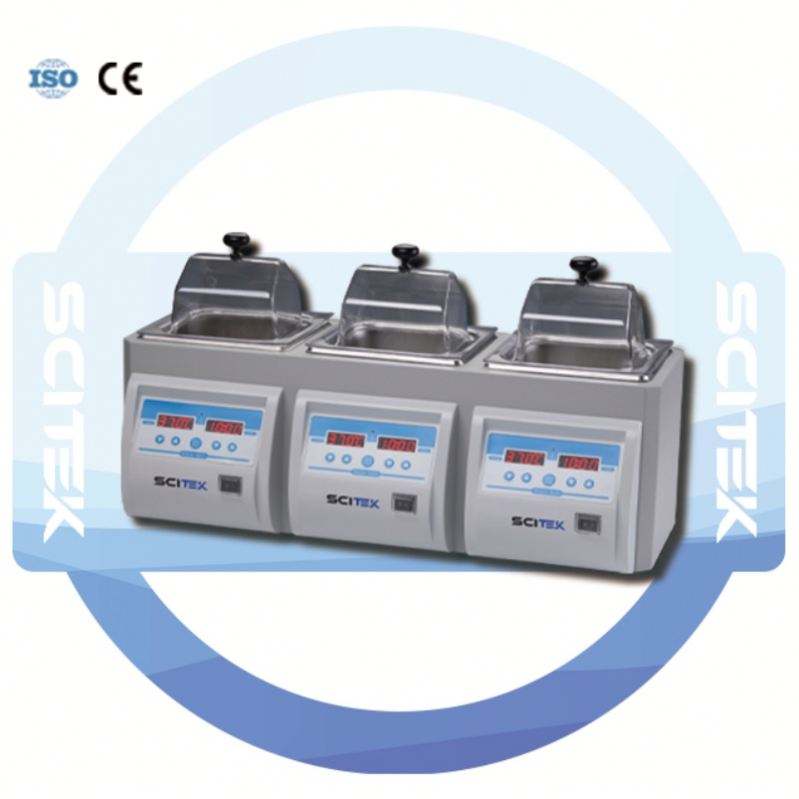 Baño de Agua para Laboratorio SCITEK de 4.5L, 2 Orificios, Termostático Eléctrico con Control de Temperatura de +5~99 °C y Fluctuación de 0.5 para Laboratorio