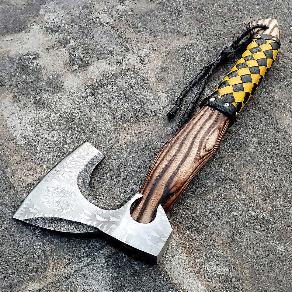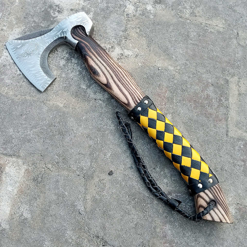 Hacha Vikinga Forjada a Mano con Mango Multicolor | Hacha Vikinga para Acampar y Uso Diario para Cortar Madera