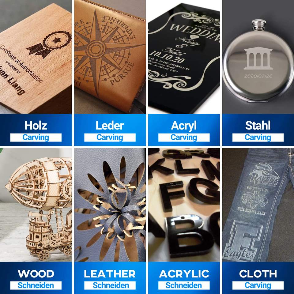 Material de corte:Cartón, tela, tablero de madera, bambú, acrílico, tablero plástico;