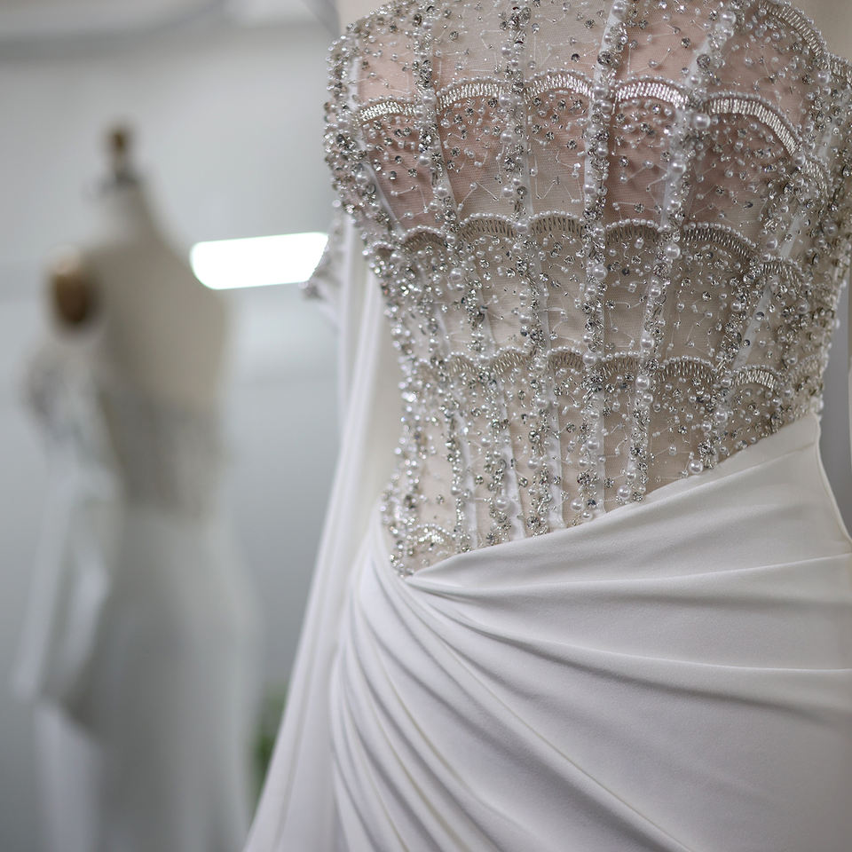Decoración:De cristal, Patrón, Flores, Perlas, Pliegue , Plumas