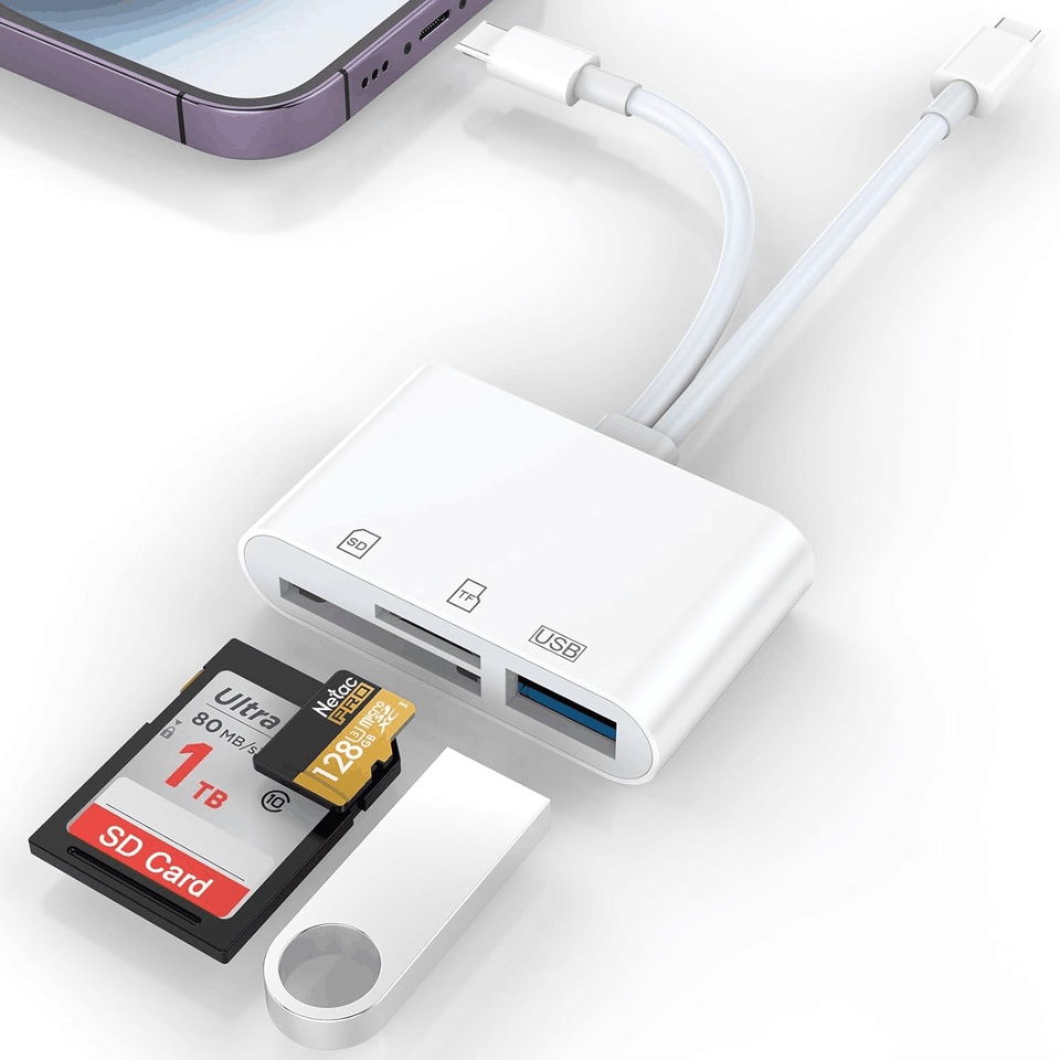 Lector de tarjetas SD para iPhone iPad, adaptador USB L a USB 5 en 1 Visor de tarjetas SD con adaptador USB 3,0 de tarjeta SD/TF, lector de tarjetas de memoria
