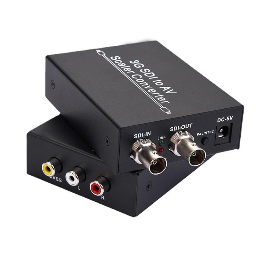 SD HD y 3G SDI a Vídeo Compuesto RCA + escalador convertidor de audio estéreo analógico L/R