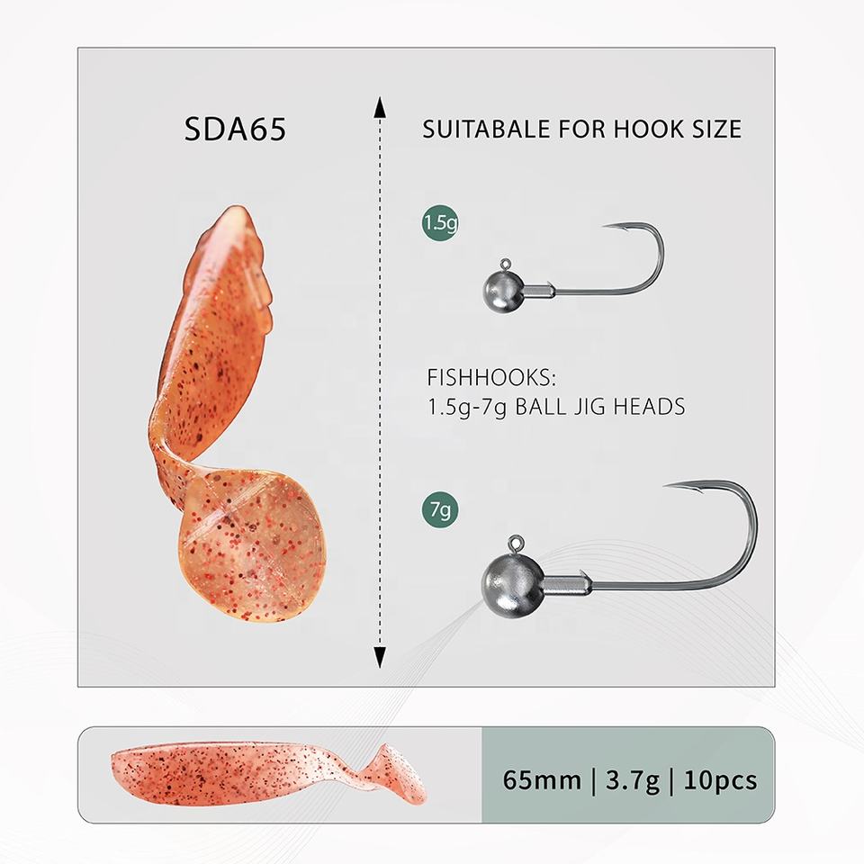 Señuelos de Pesca de gusano suave SDA65, cebo de silicona de PVC con sabor a calamar, cabeza de plantilla de 4 bolas, paleta colorida, cola en T, venta al por mayor
