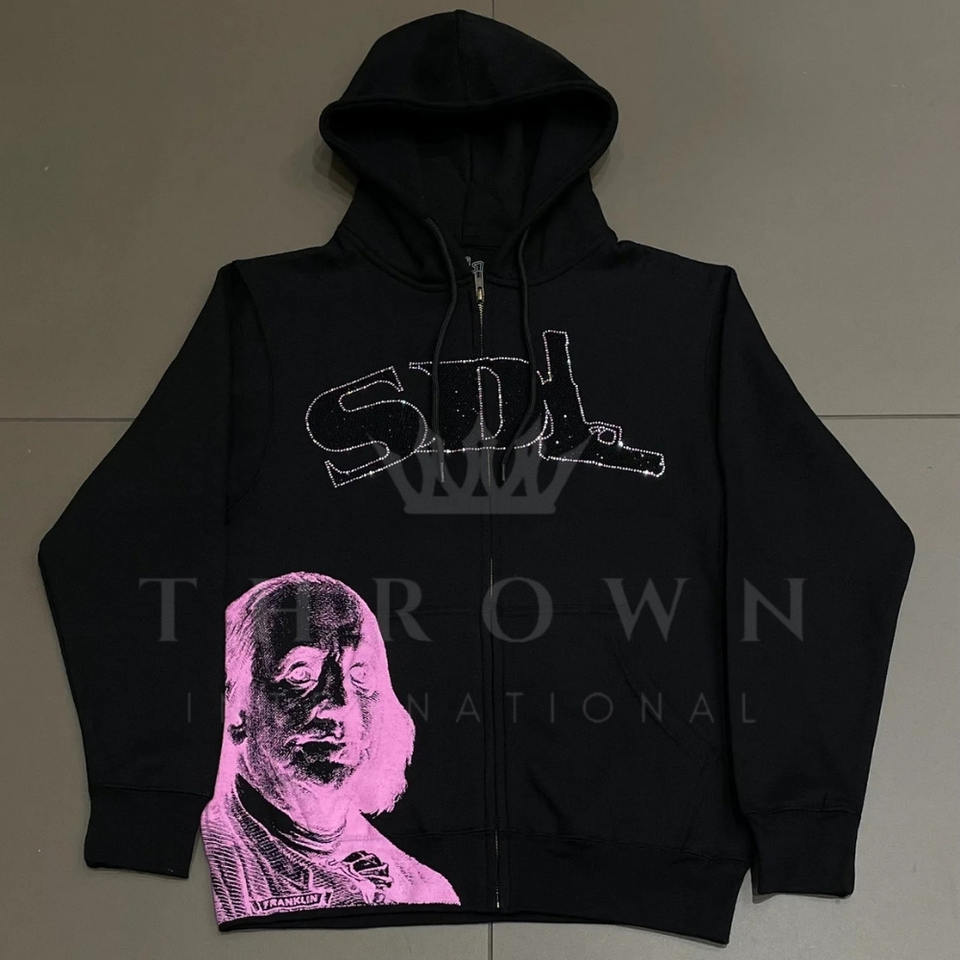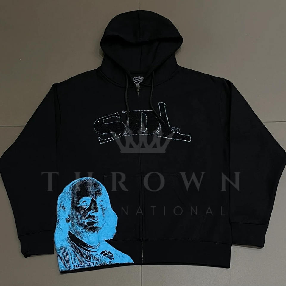 Sudadera con Capucha SDL Skeleton para Hombre, 100% Algodón, Forro Polar, Invierno, Logotipo Bordado con Pedrería, Corte Holgado, Colores Personalizados