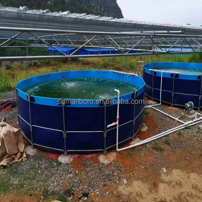 Tanque de Peces Redondo de PVC Azul Plegable Personalizado de 20000 Litros con Marco de Acero y Generador de Oxígeno para Piscicultura y Camarónicultura