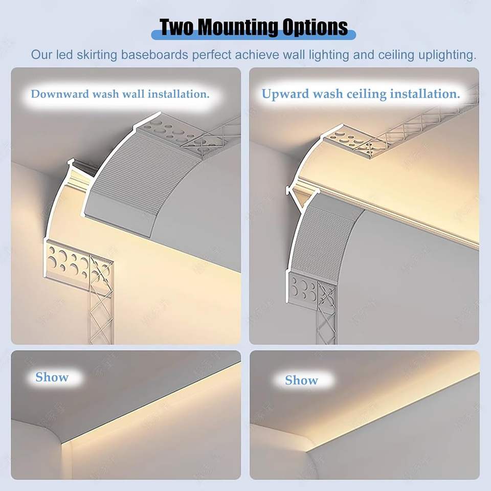 Nombre del producto:Canal LED de Aluminio para Iluminación Indirecta Arriba/Abajo, Perfil para Moldura de Corona