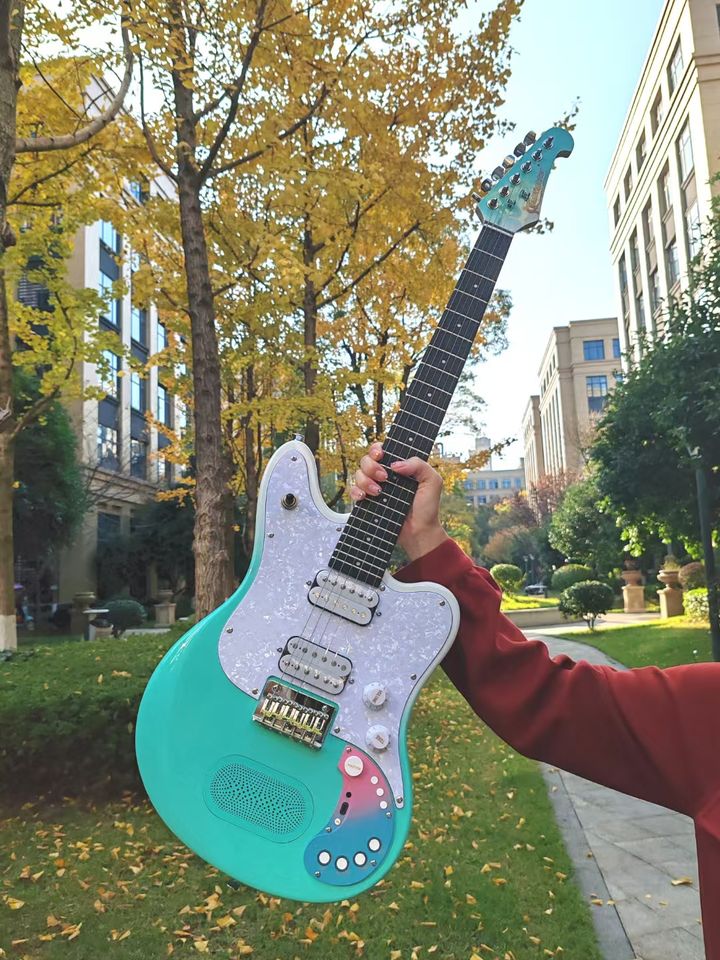 SE Mini Bullfighter Instrumentos musicales 24 trastes 6 cuerdas Acabado brillante Viaje Guitarra eléctrica inteligente con altavoz y efecto