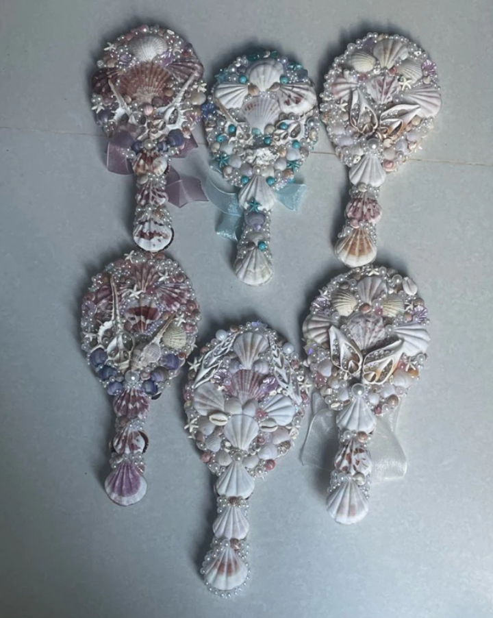 ESPEJO DE MANO SEASHELL: ESPEJO DE MAQUILLAJE DE VANIDAD ÚNICO HECHO A MANO, PORTÁTIL DE SEASHELL NATURAL, VIETNAM.