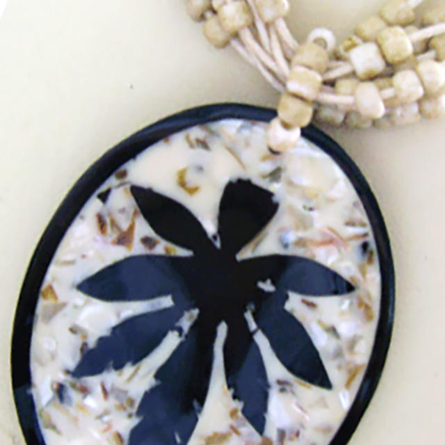 Collar de mosaico de conchas con cuentas.