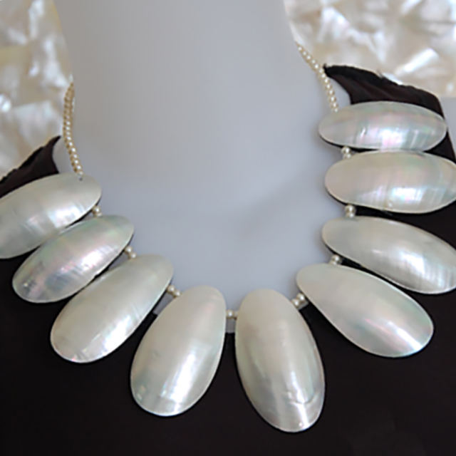 Nombre o palabras:Collares de joyería con conchas de perlas.