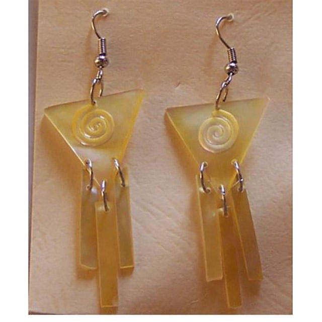 Nombre o palabras:pendiente de labio amarillo con forma de fregona