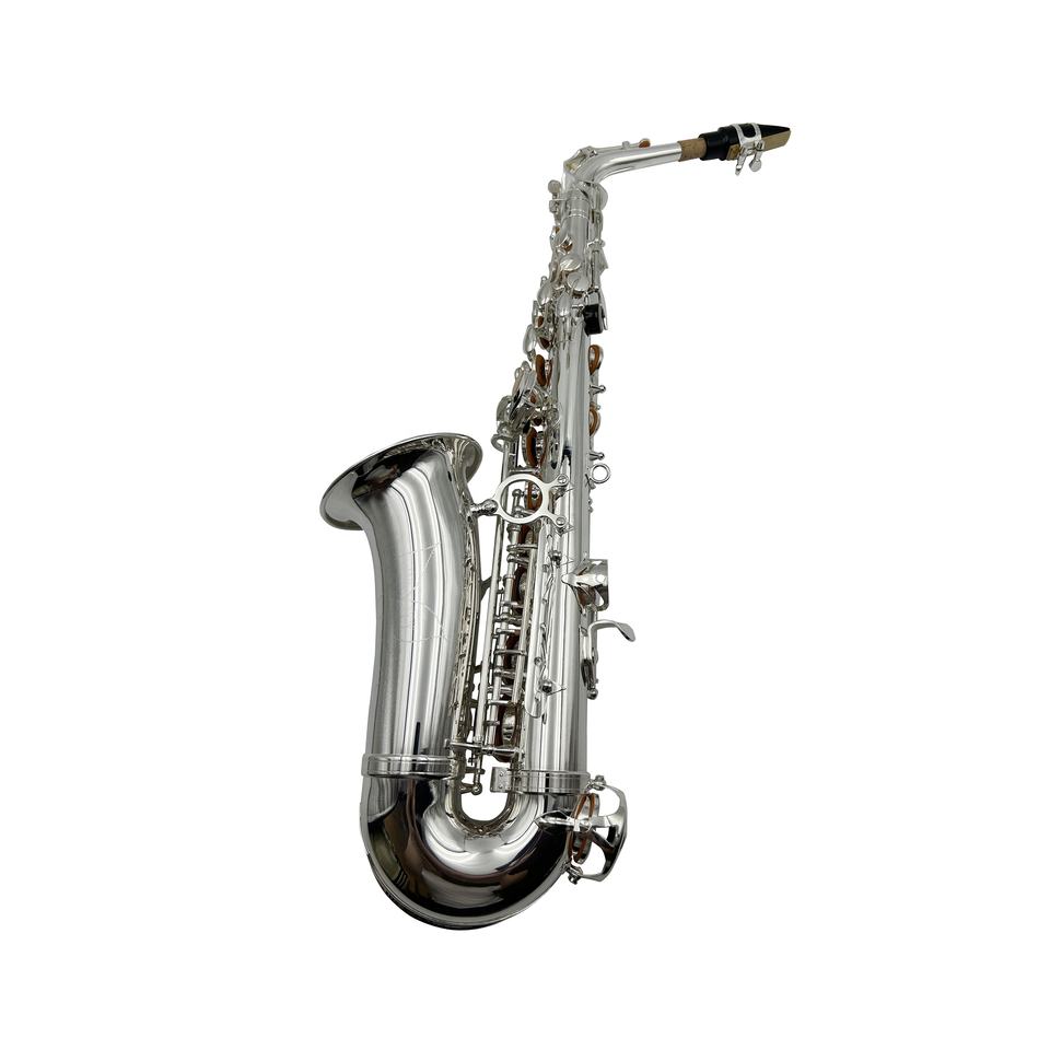 Saxofón Alto Profesional SEASOUND OEM de Latón Plateado en Tono Mi bemol con Estuche Impermeable de Alta Gama Ajustable JYAS102S