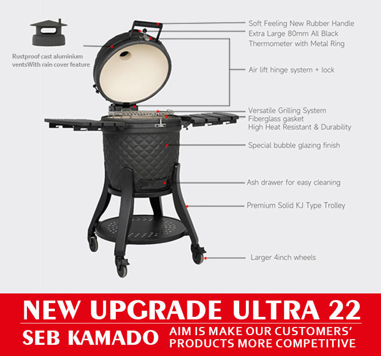 Parrilla Kamado de Cerámica SEB Ultra de 22 Pulgadas, Asador de Carbón para Cocina Exterior y Ahumador