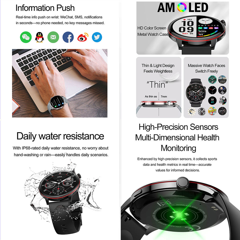 Reloj despertador, Respuesta telefónica, Calculadoras, Calendario, Recordatorio de llamada, Rastreador de calorías, Marcar llamada, seguimiento de forma, Monitor de ritmo cardíaco, Gestión menstrual, Recordatorio de mensajes, Mensaje emergente, Recordatorio sedentario, Rastreador de sueño, Notificaciones de Medios socialesFunción