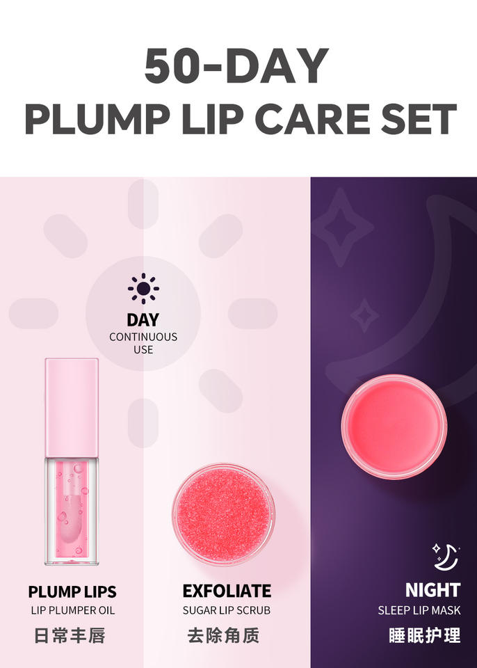 SENKA Custom Lip Care sets 3 PCS Kit Vegan Cruelty Free Pink Lip Balm Care Scrub Mask Lip Oil Etiqueta privada