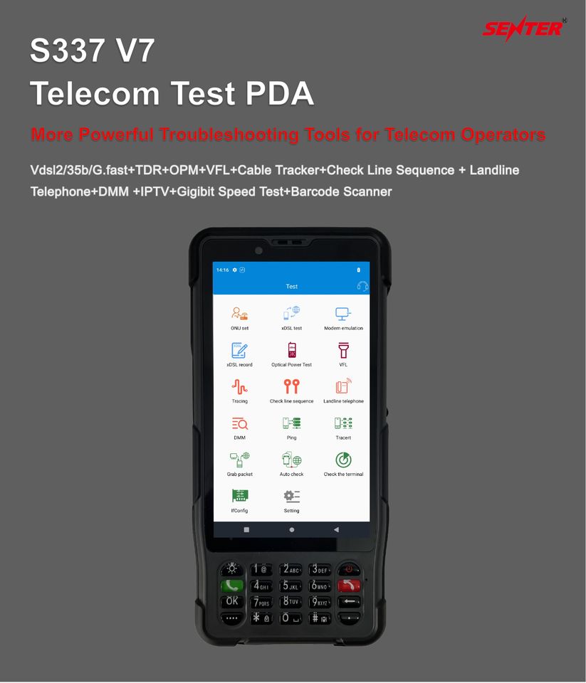 Multímetro de telecomunicaciones SENTER con OPM,VFL,IPTV,DMM, localizador de fallas de cable TDR, probador de línea Tel, tarjeta SIM, prueba de velocidad de teléfono móvil 4G