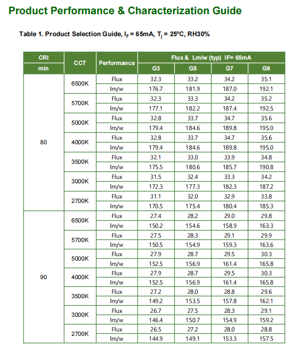 2700k, 3000k, 3500k, 4000k, 5000k, 5700k, 6500k