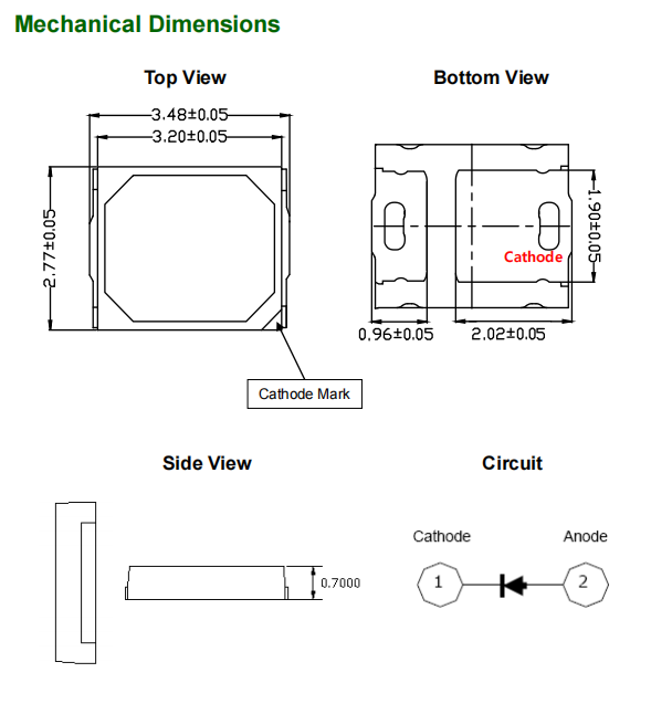 Chip de Iluminación LED de Potencia Media SEOULs Serie 3528 STW8A12D-GX00000P000 0.2W 3V 80CRI 2700K-6500K Blanco Cálido Regulable