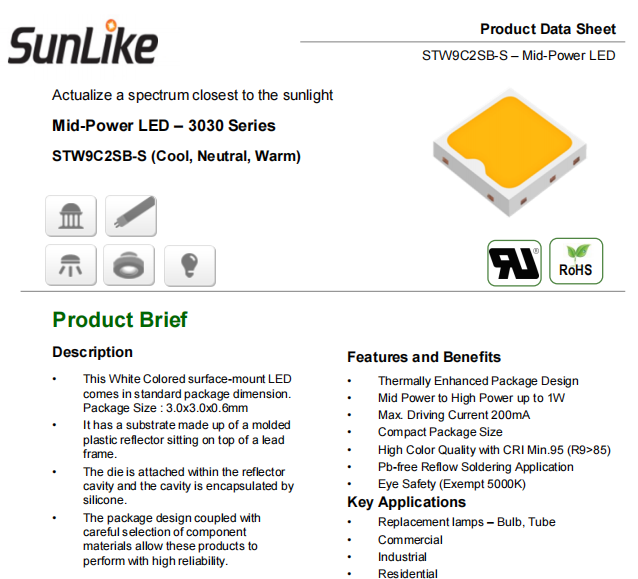 SEOULs Mid Power 150mA 1W 6V Iluminación Led Chip Blanco 3000K 4000K 6500K para iluminación industrial