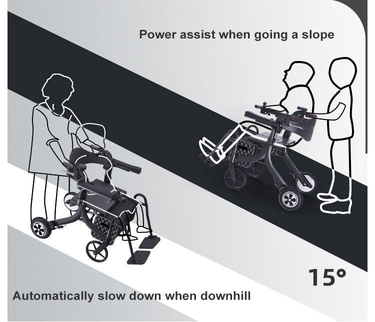Silla de Ruedas Eléctrica Plegable Ultraligera SER01 con Joystick LCD y Asistencia Eléctrica, Plus Andador Eléctrico con Asiento y Bolsa de Compras