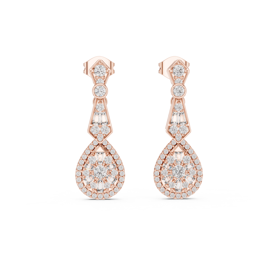 SERAPHINA - Juego de pendientes con diamantes cultivados en laboratorio, engastados en oro rosa de 18 quilates, para mujer, para compromiso, boda, regalo de San Valentín, eventos, uso diario