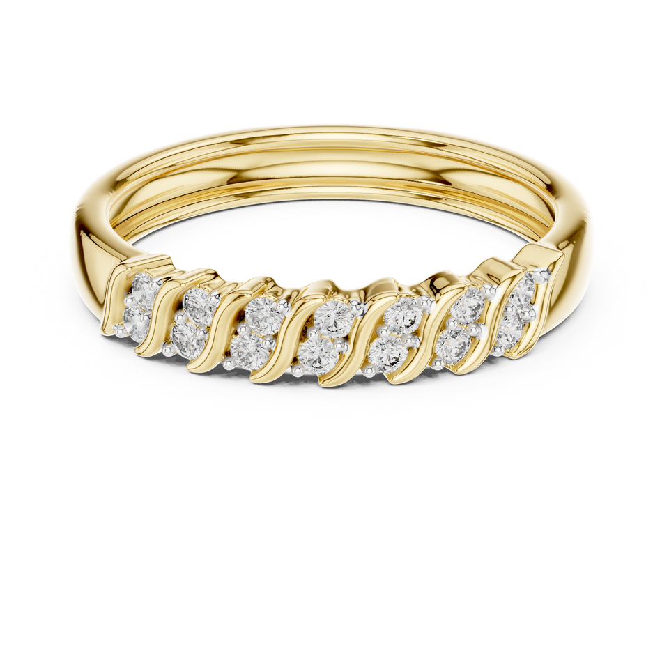 Anillo de Diamantes Cultivados en Laboratorio SERENITY WAVE, Oro Sólido de 18 Quilates, Chapado en Rodio, Estilo Minimalista, para Compromiso, Boda, San Valentín, Uso Diario