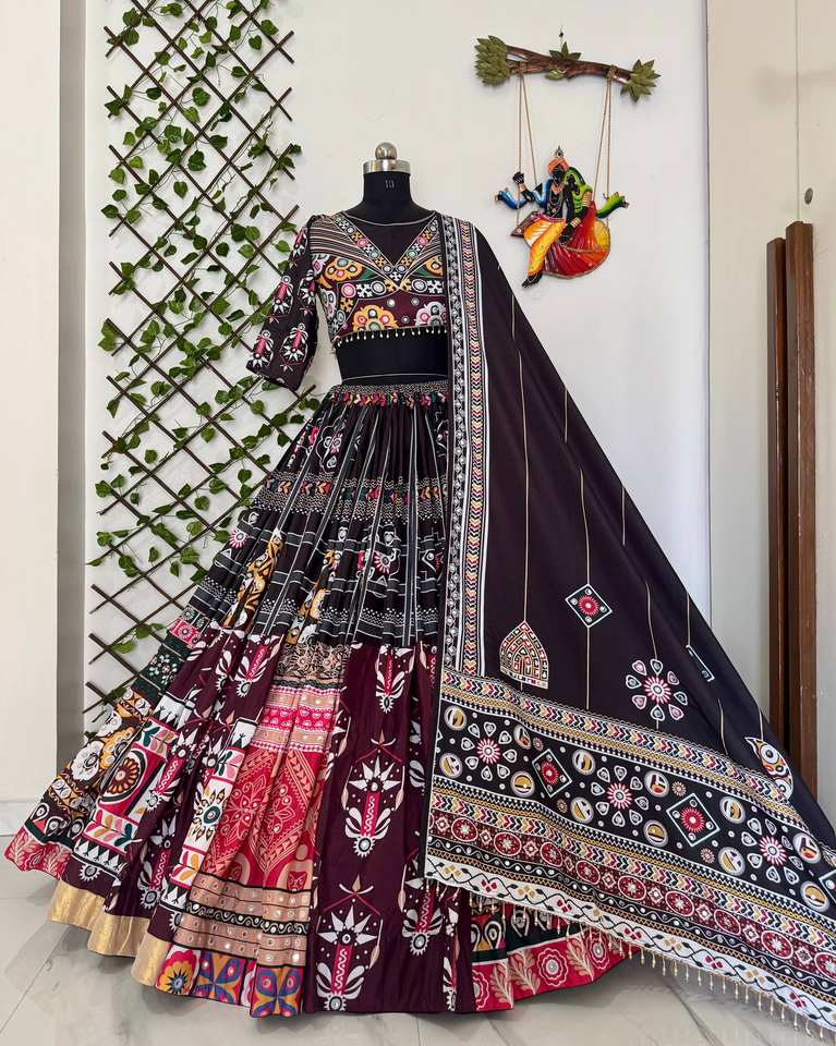 SERIE PRESENTANDO NUEVO NAVRATRI ESPECIAL MODERNO LEHENGCHA CHOLI Hermosa impresión digital y ropa de fiesta de TRABAJO DE ESPEJO REAL