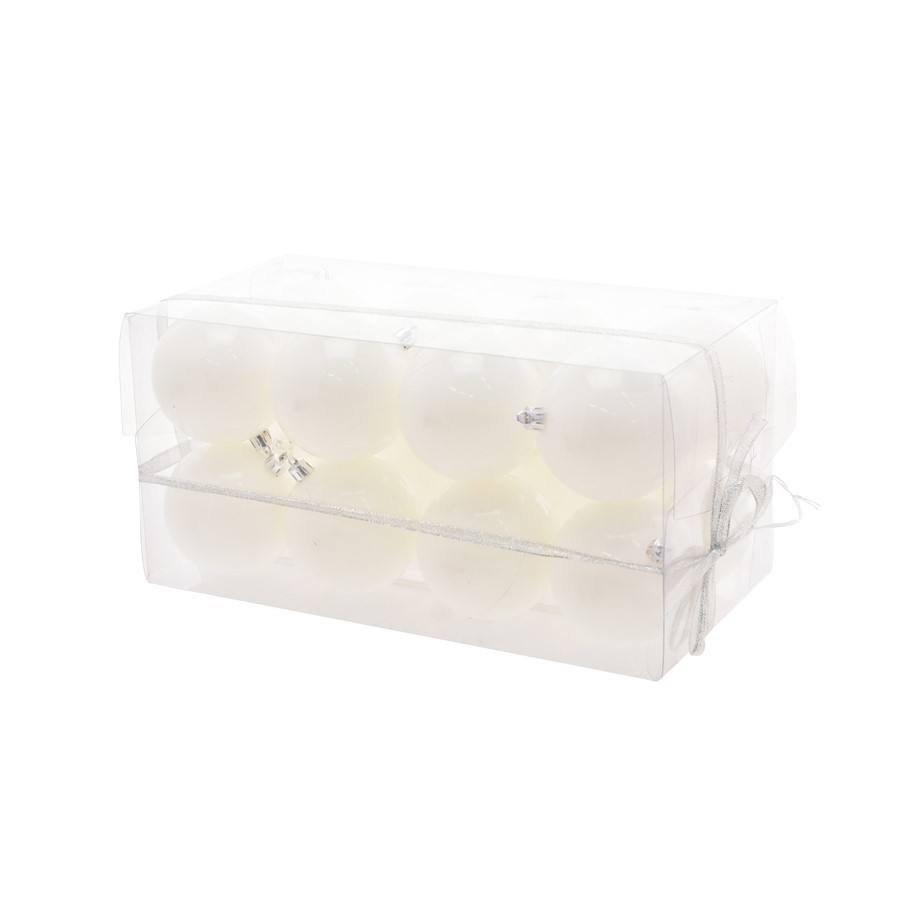 JUEGO DE 16 BOLAS DE PLÁSTICO, DIÁMETRO 8CM, BLANCO BRILLANTE