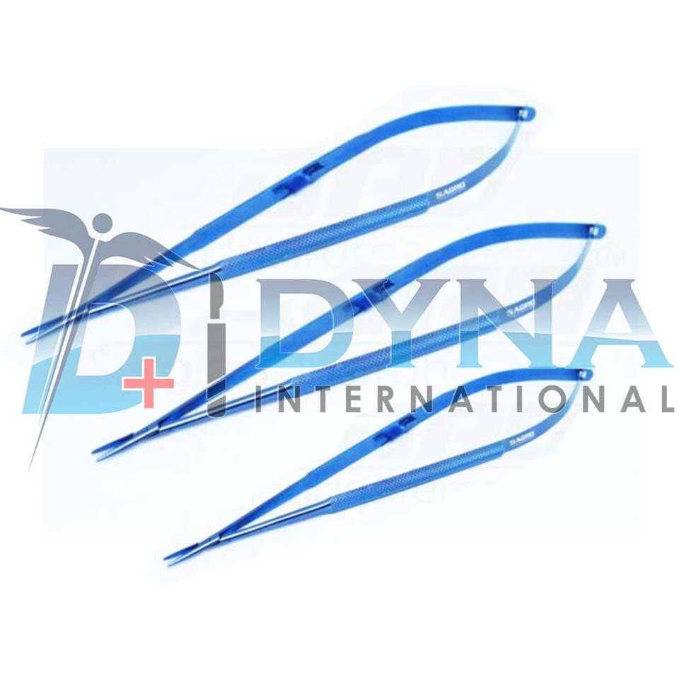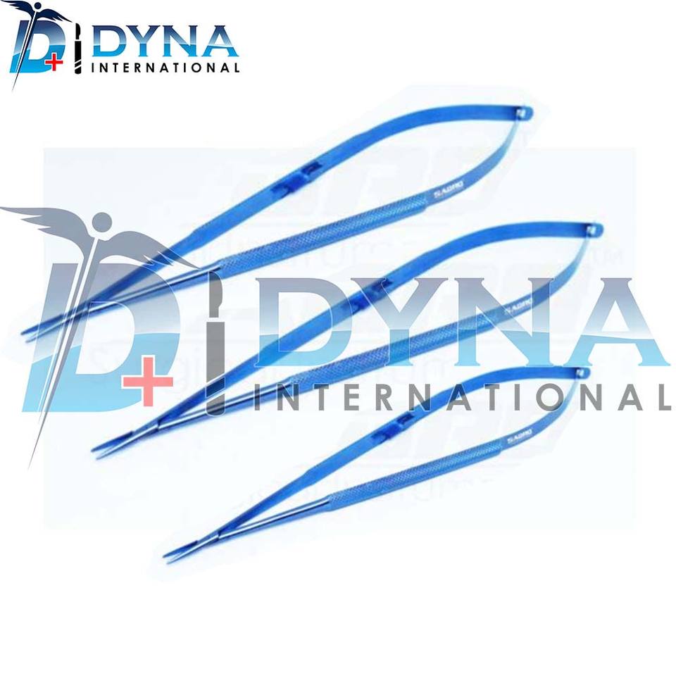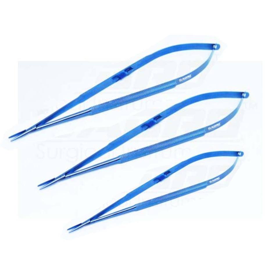 Conjunto de 3 agujas de titanio Castroviejo, sin bloqueo, micro instrumentos oftalmológicos, mandíbulas rectas de 1,2mm de mango plano