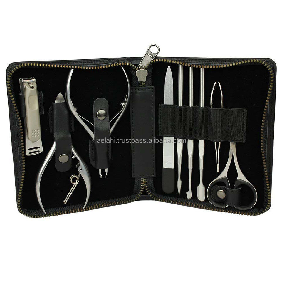 Juego de 9 Piezas de Kit de Manicura y Pedicura Profesional para el Cuidado de Uñas de Manos y Pies, Tijeras, Cortaúñas, Estuche 2026