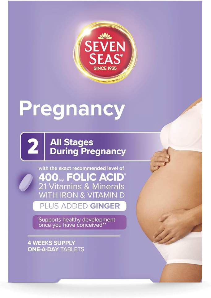 SEVEN SEAS 28 Cápsulas, Suministro para 4 Semanas, Multivitamínico con Sabor a Jengibre y Ácido Fólico para Mujeres Embarazadas, Cápsulas de Nutrición Materna
