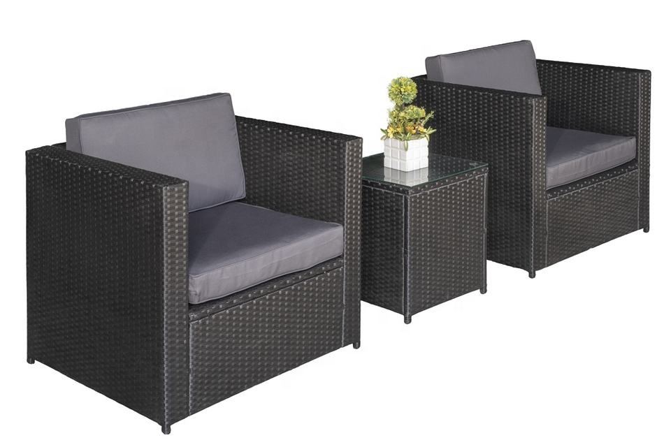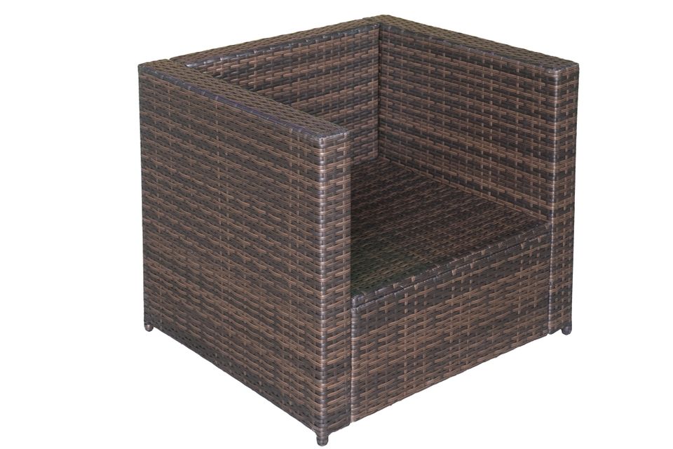 Sofá de Jardín Moderno SF00001 de Mimbre y Ratán con Acero, Vidrio Templado, Cojín de Poliéster, un Asiento, Mueble de Exterior para Sala de Estar