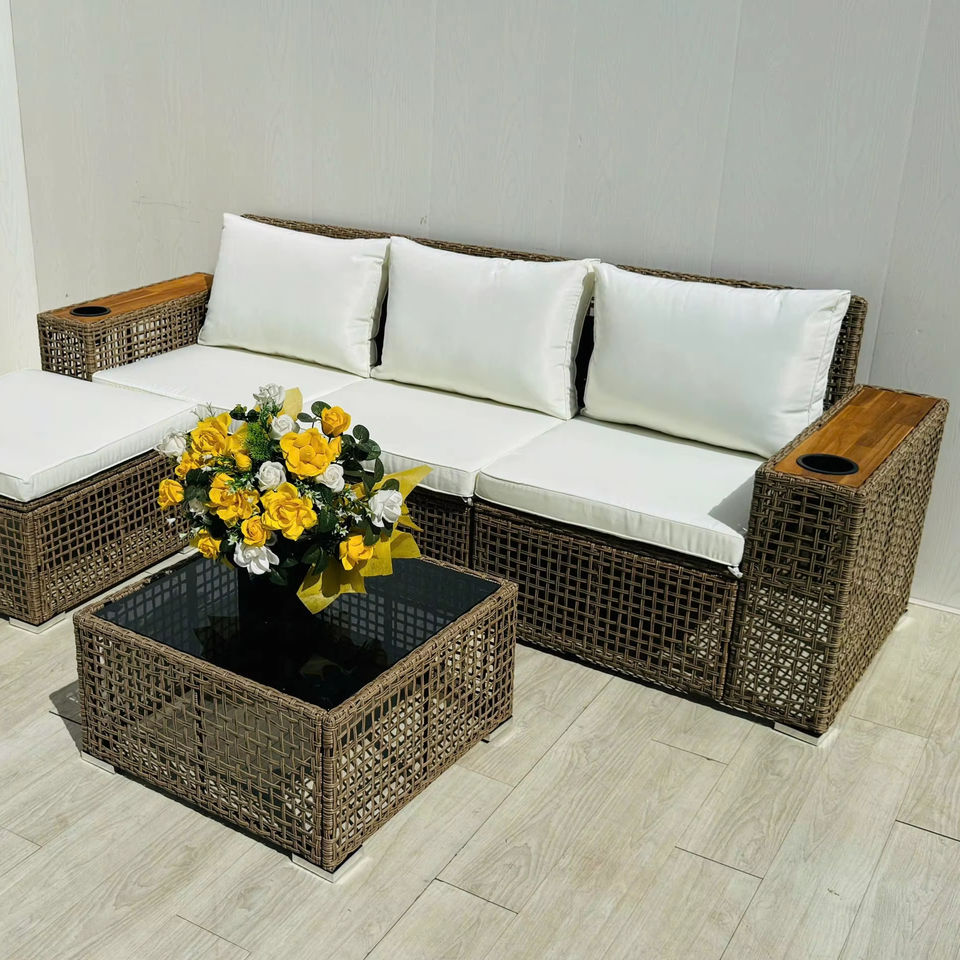 Acero, ratán, mimbre, vidrio templado, cojín PolyesteMaterial