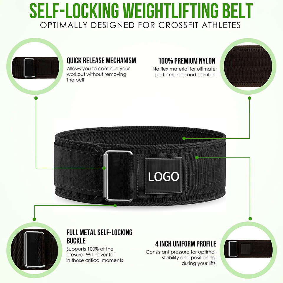 Cinturón de levantamiento de pesas de nailon ajustable y flexible con logotipo personalizado SFI para hombres y mujeres