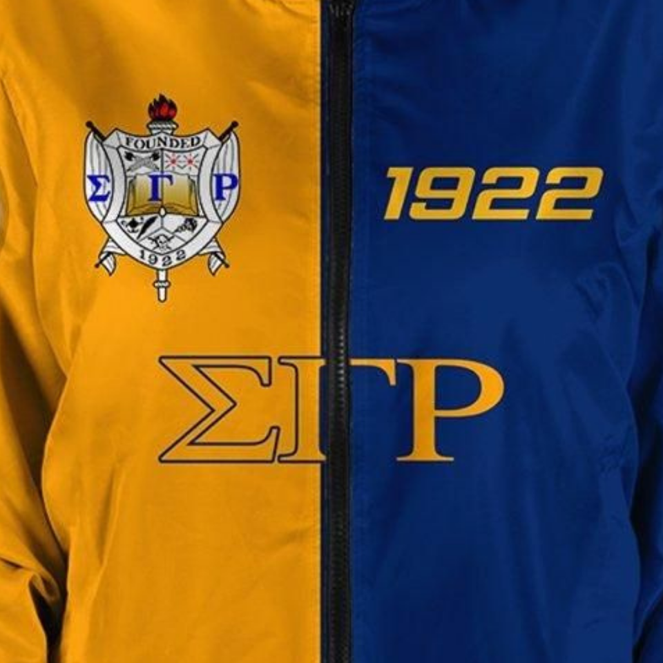 Chaqueta Universitaria Azul y Dorada de Satén Griego SGRho Sigma Gamma Rho 1922, Ropa Femenina de Hermandad