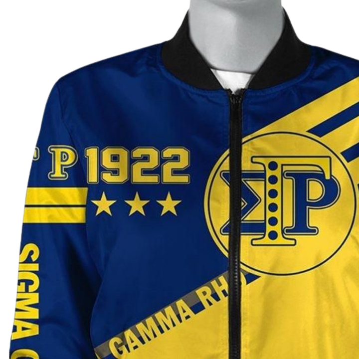 Chaqueta Universitaria de Satén Azul y Dorado SGRho Sigma Gamma Rho Griega 1922, Chaqueta Bomber para Mujer