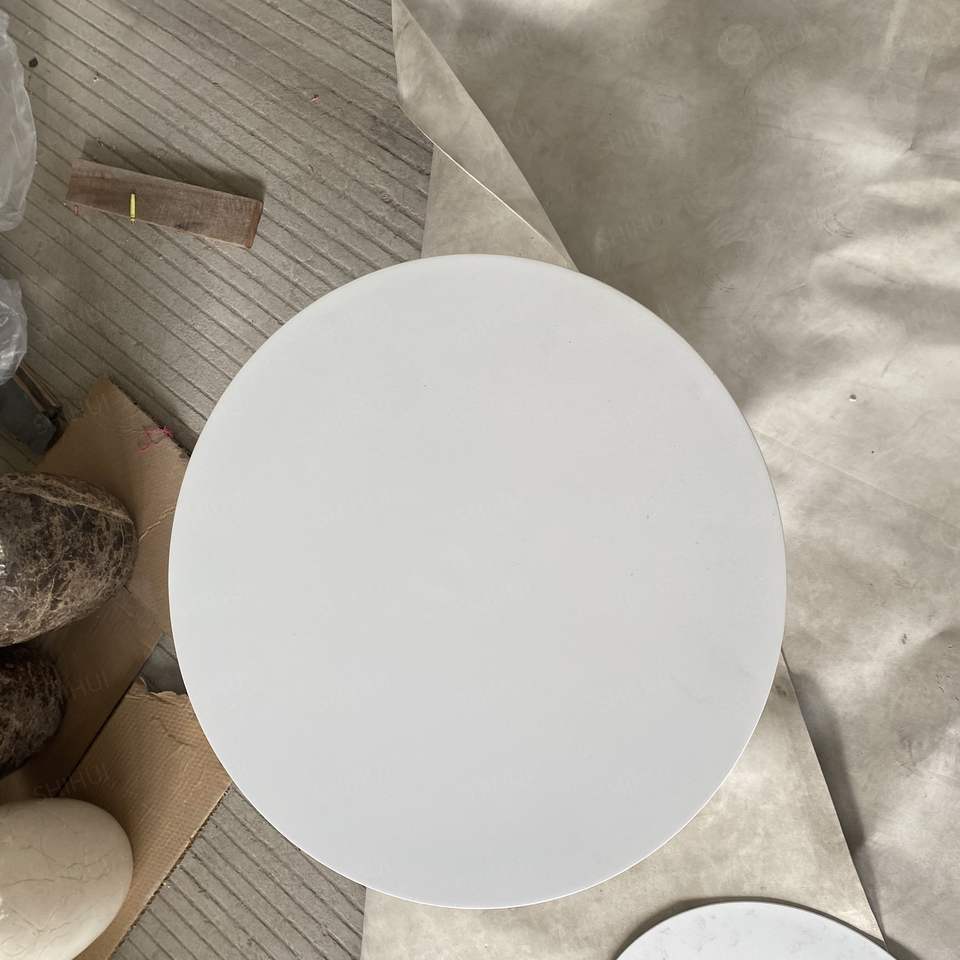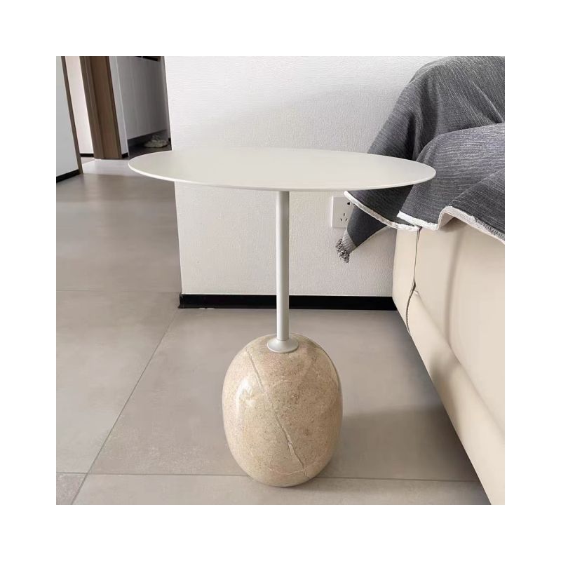 Mesa Auxiliar Redonda de Acero al Carbono con Base de Mármol Crema Marfil Beige, Estilo Contemporáneo y Personalizado de SH STONE
