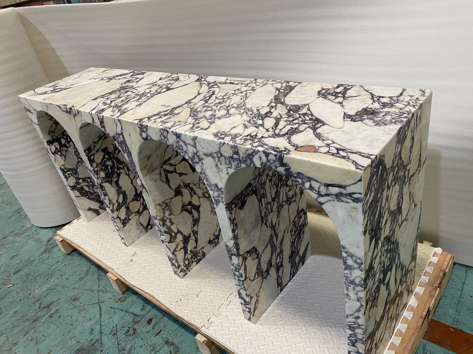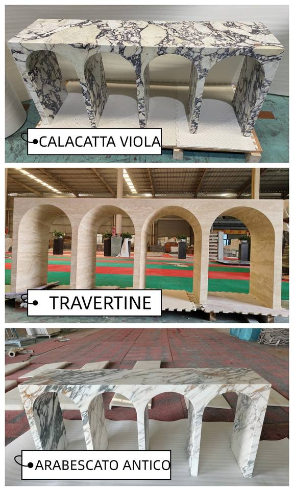 Muebles de Piedra de Estilo Nórdico para Decoración del Hogar, Mesa Consola Decorativa de Mármol Italiano Calacatta Viola con Forma de Arco para la Entrada