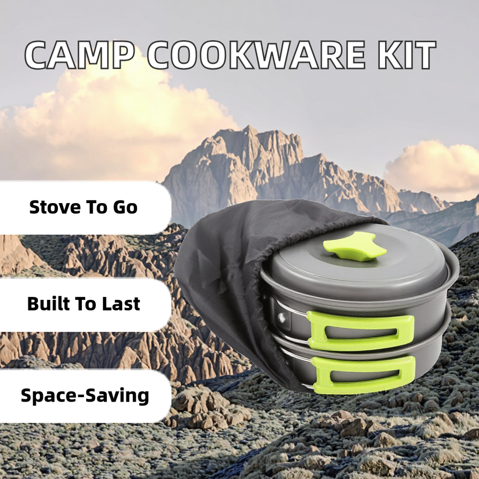 Juego de Utensilios de Cocina SHARIN para Acampar, Juego de Ollas y Sartenes de Hierro Fundido con Capacidad de 1-2L, Estufa de Gas Portátil