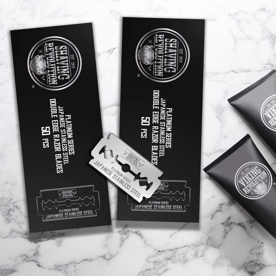 SHAVING REVOLUTION Cuchillas de afeitar de doble filo, 50 unidades, acero inoxidable japonés de platino, afeitado seguro, suave y preciso para hombres