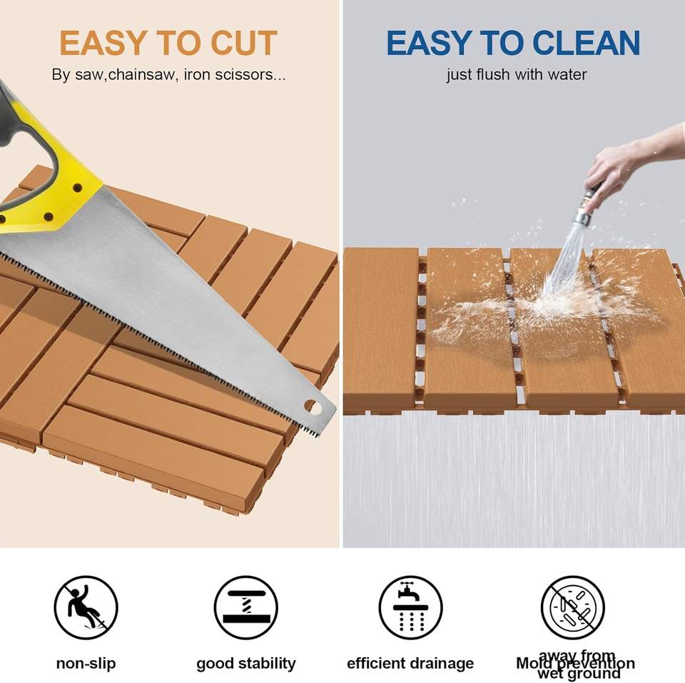 SHENGCHENG - Baldosas de Plástico para Terraza, Interconectables, para Interiores y Exteriores, Baldosas de WPC para Jardín, Baldosas de Madera para Terraza