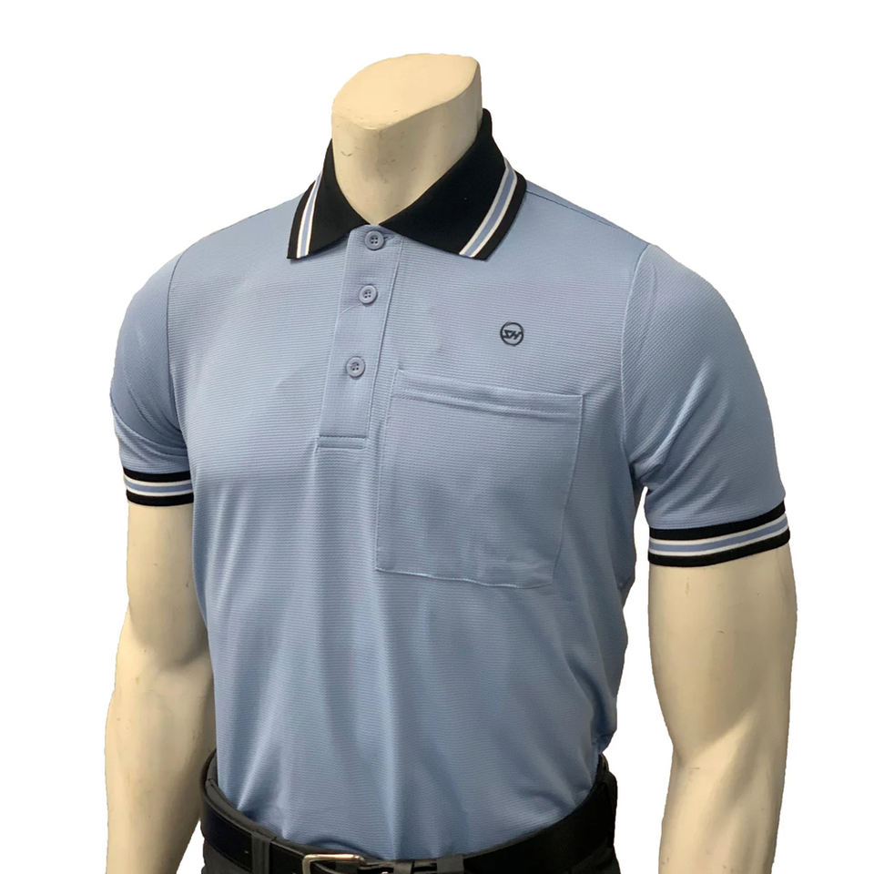 SHH Panel lateral personalizado con acento blanco Camisas de árbitro de media manga suaves transpirables disponibles en azul marino de medianoche/azul brillante