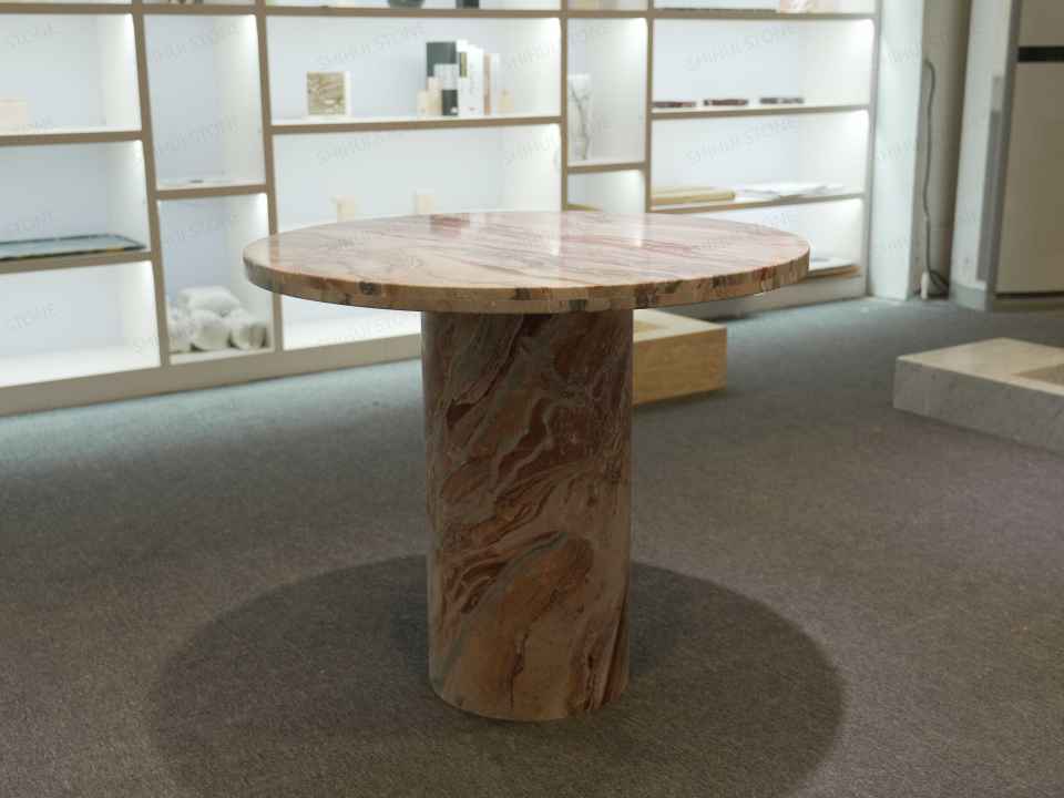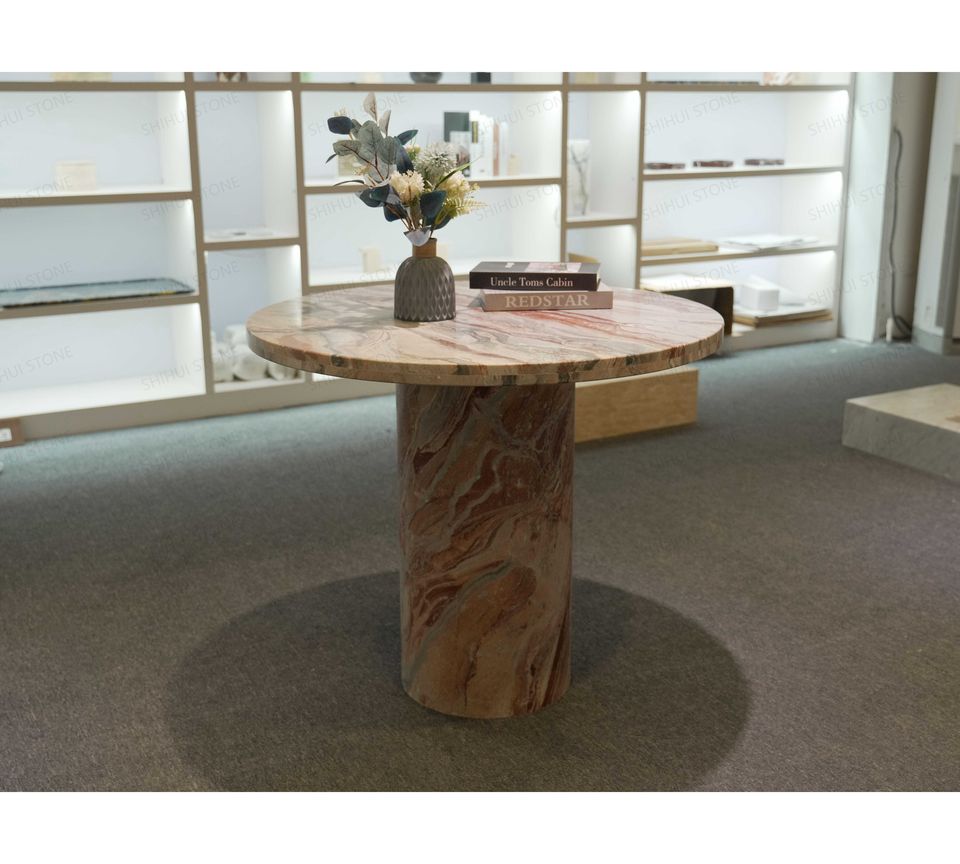 Mesa de comedor de mármol rojo Mónica de diseño moderno personalizable SHIHUI muebles de cocina y restaurante redondos de piedra Natural