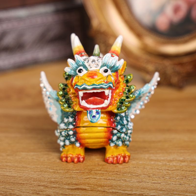 SHINNYGIFTS QI LIN Feng Shui caja de baratija de Metal estatua esmaltada pintada a mano para la riqueza protección de la suerte decoración coleccionable