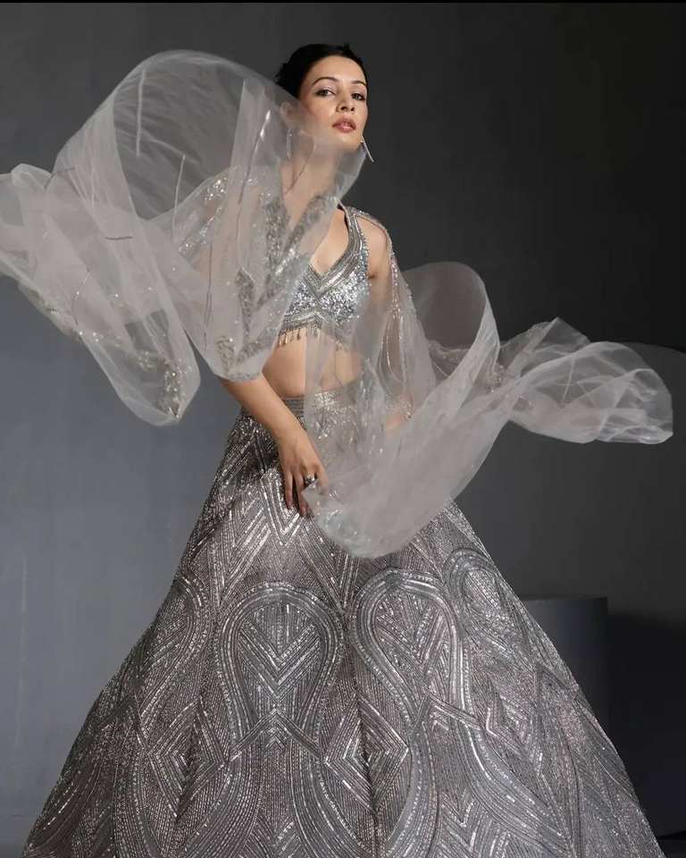 SHIV FASHION - Hermoso Lehenga Choli Dupatta Tradicional Pakistaní de Diseño, de 3 Piezas, en Faux Georgette, Largo hasta el Suelo, para Festivales