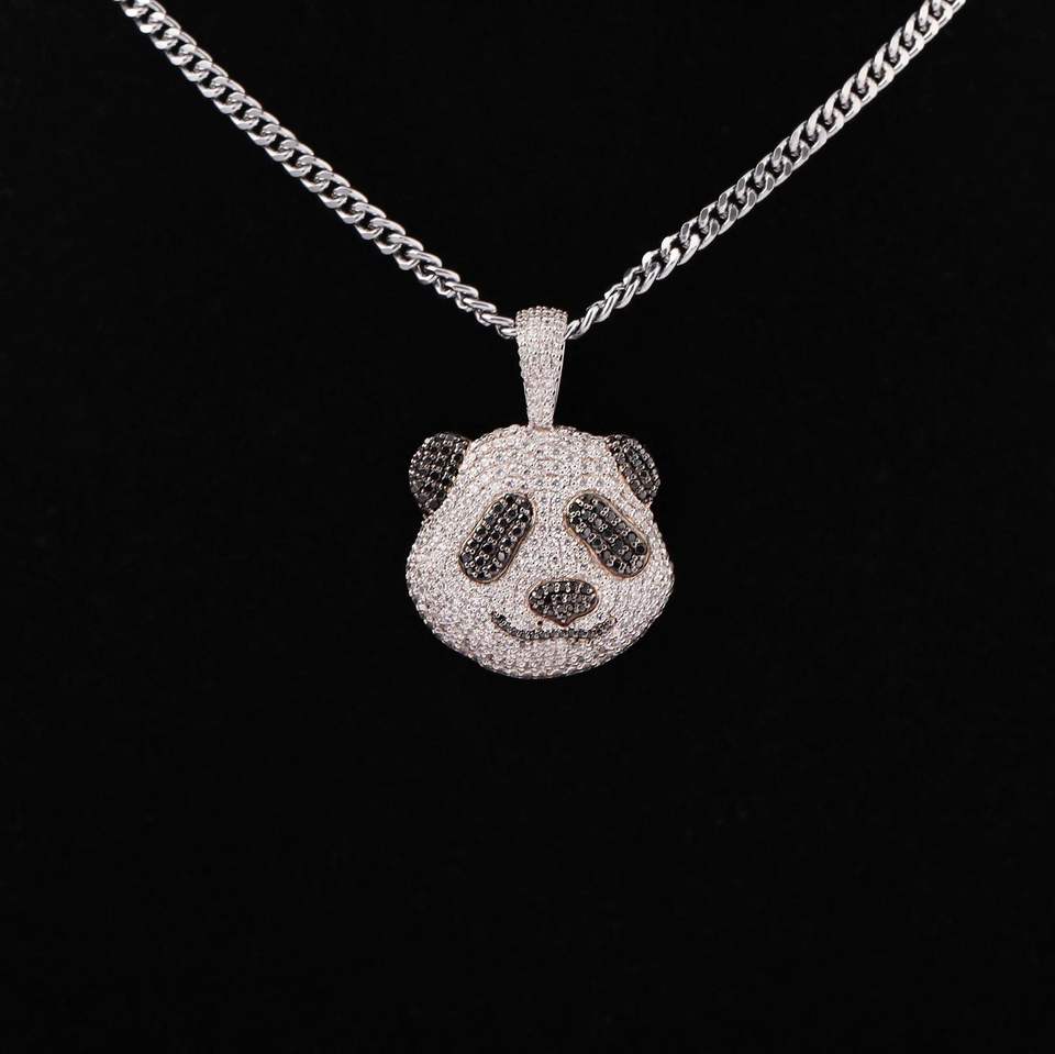 SHIVPATH Iced Out Panda en forma de cara Moissanite diamante colgante collar en 925 plata esterlina Hip Hop Bling joyería